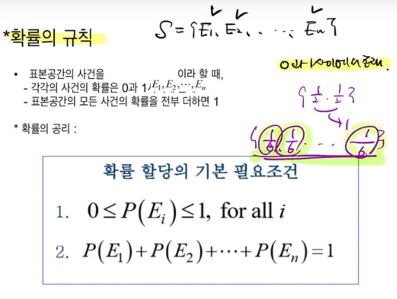 1. 간단하게 표본공간에서 각각의 사건의 확률은 0과 1 사이에 존재한다